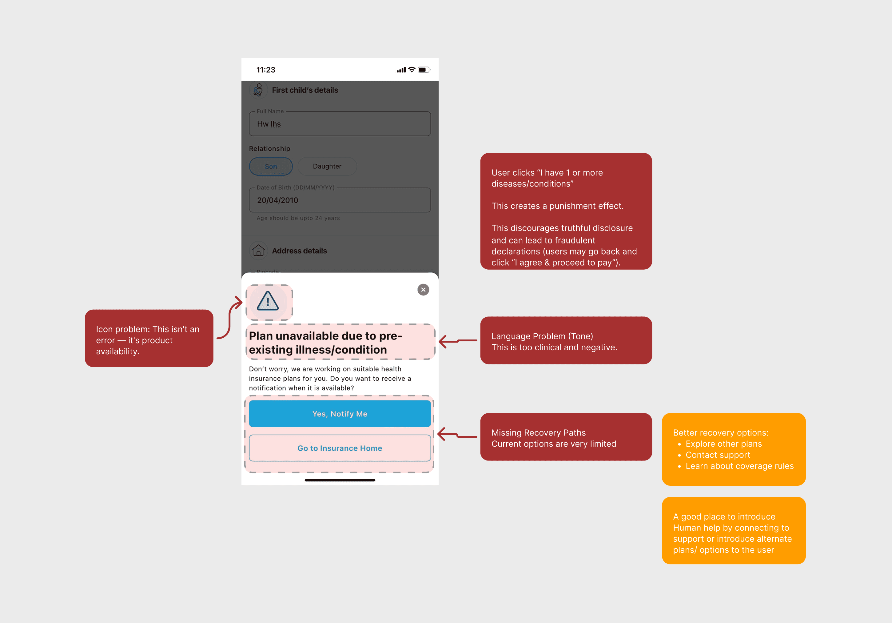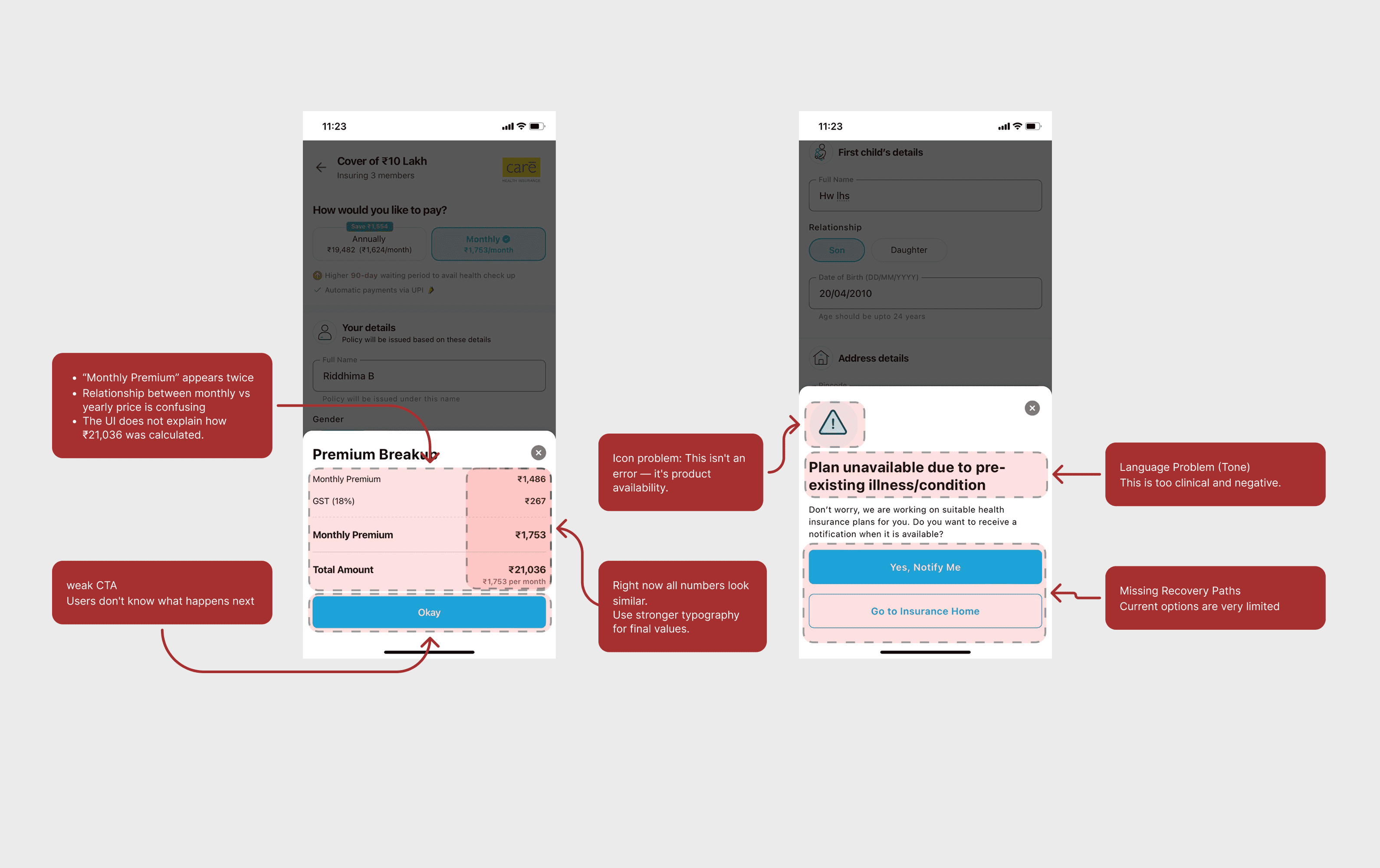 When questions feel confusing or high stakes, users tend to stop. Not because they don't want to buy insurance but because the entire experience makes them doubt themselves.