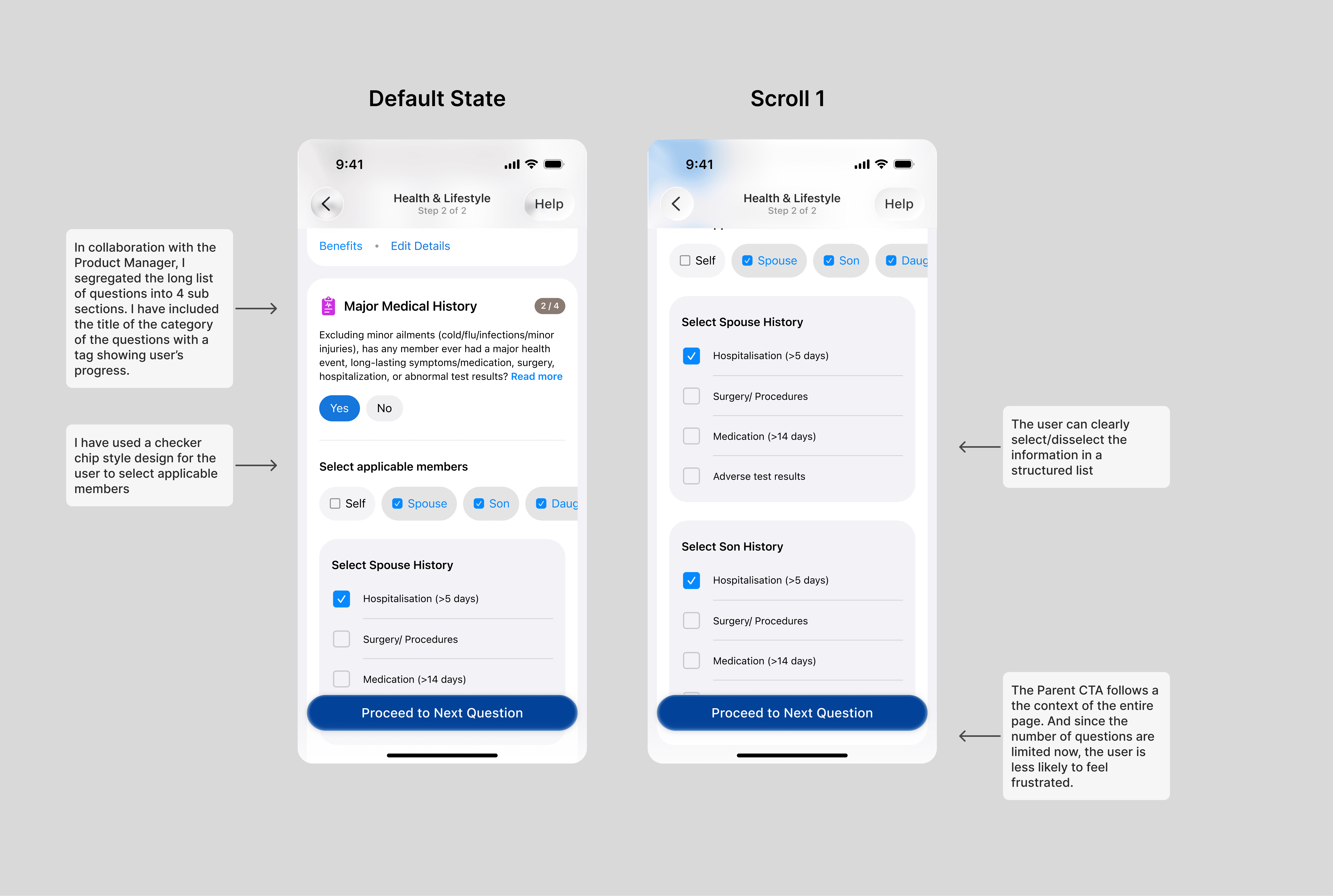 This interaction made the form quite long. This consisted of 3-4 scroll views since some questions even had subsections