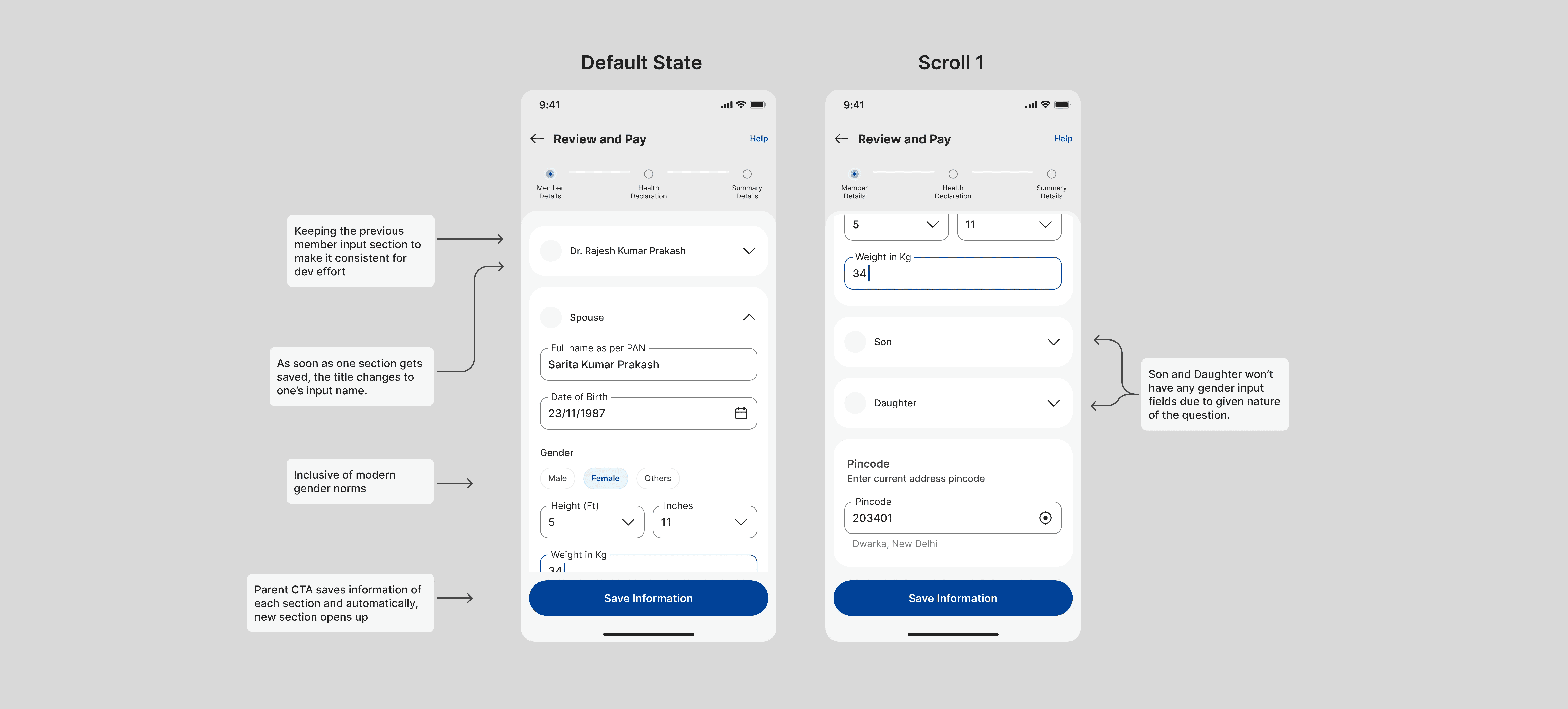This section needed to make the process of inputting member details smooth and less like filling a form
